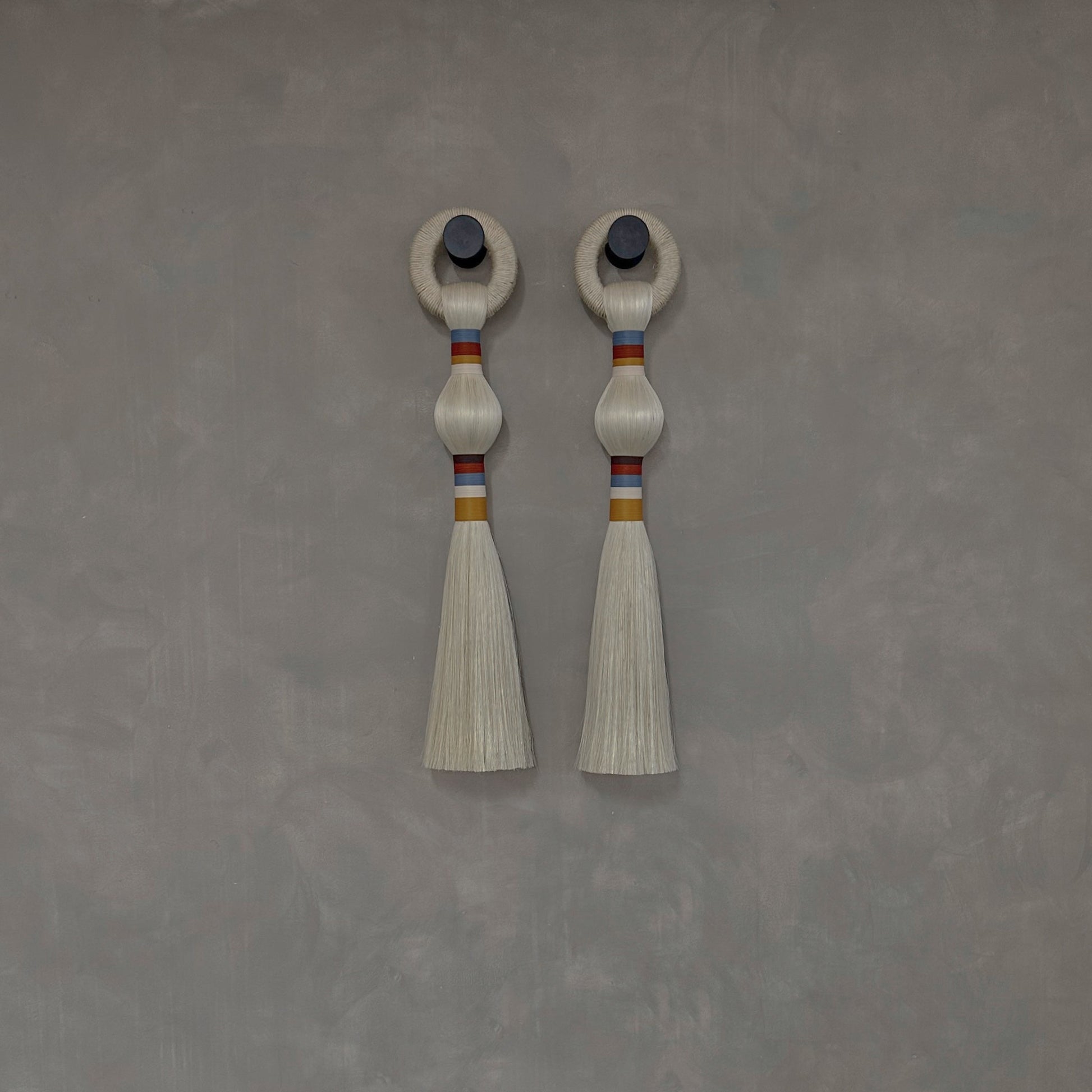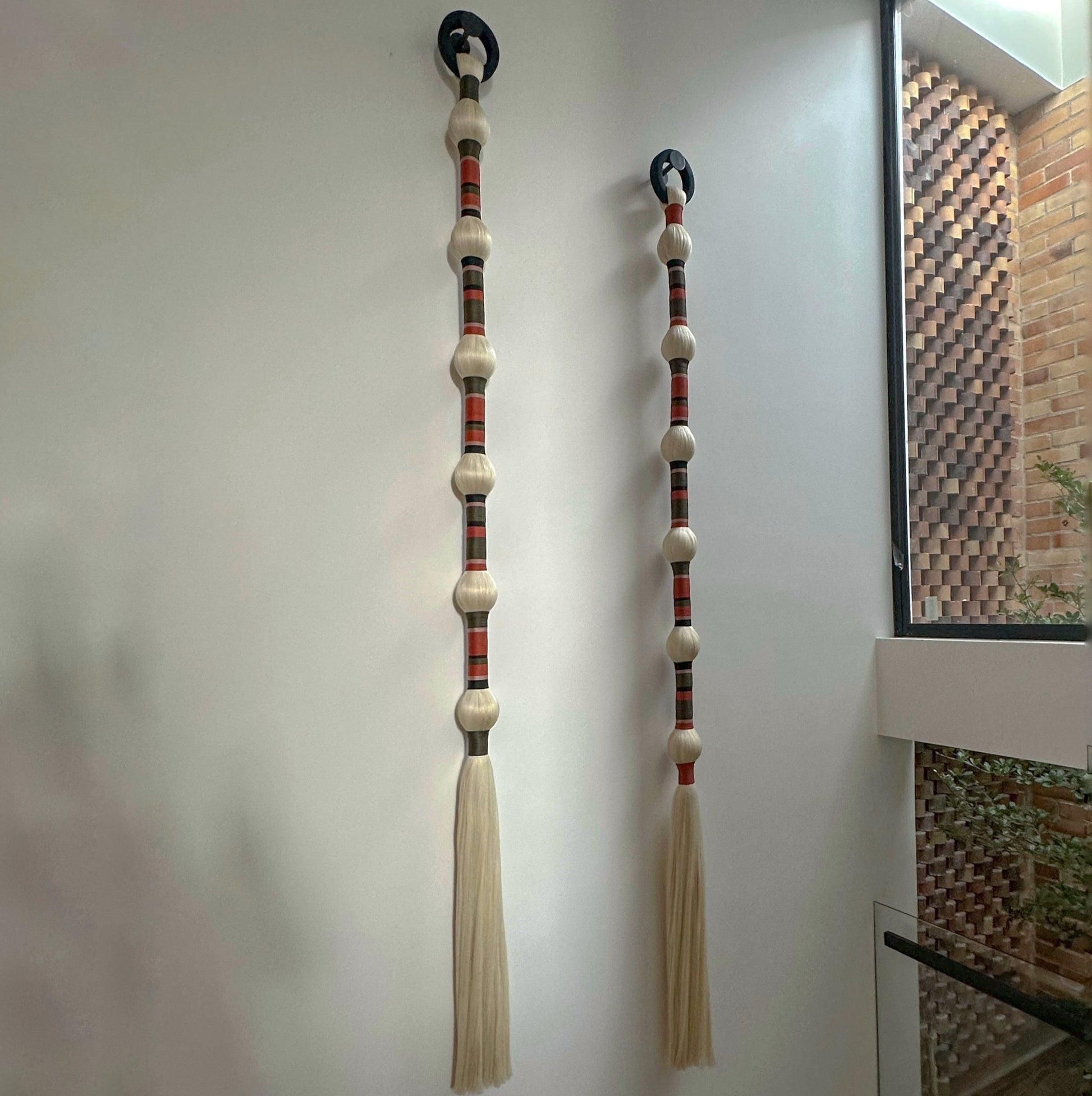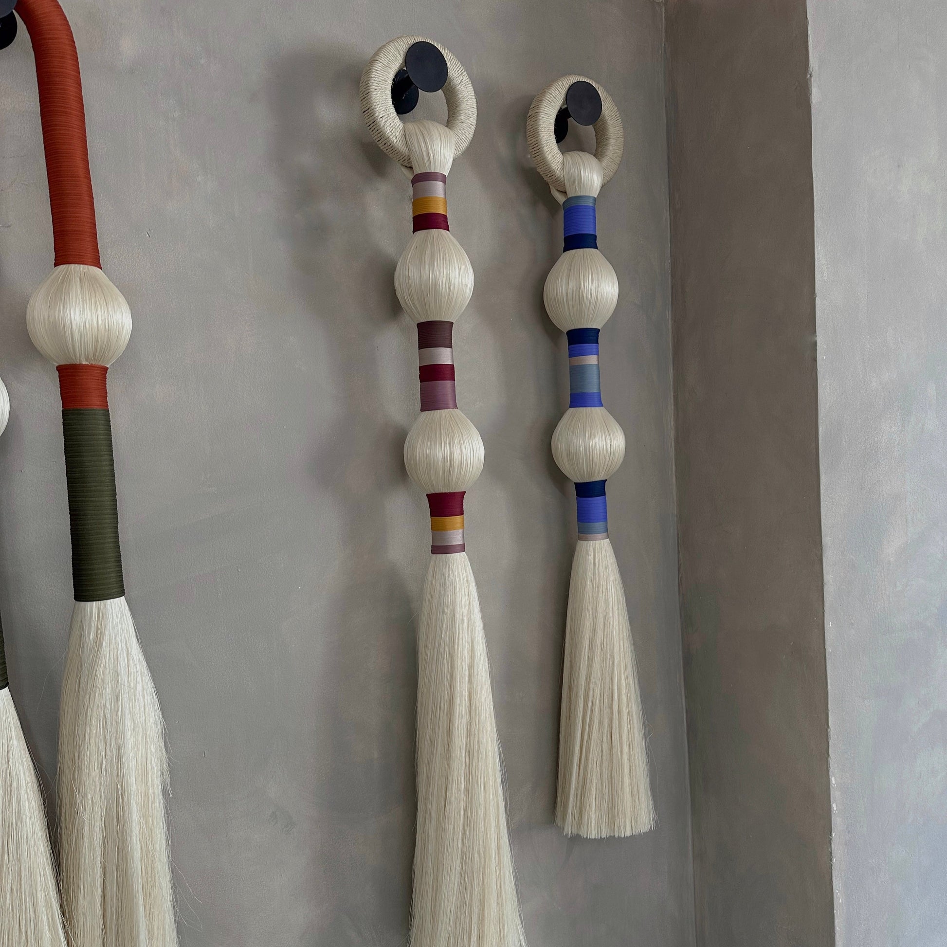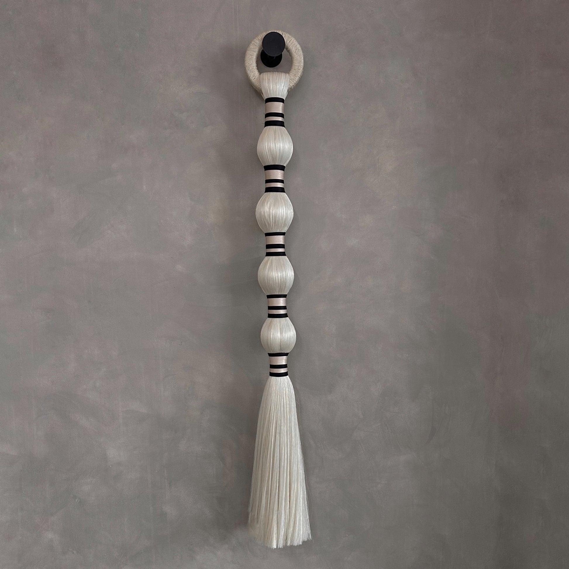 Nuestro aro de fique es una pieza decorativa de pared hecha en fique trenzado y en rama, tejido con fibras textiles recuperadas bajo la técnica de embarrilado. Cada una de estas piezas incluye su soporte para colgar hecho en lámina y varilla de acero y terminado con pintura electrostática.