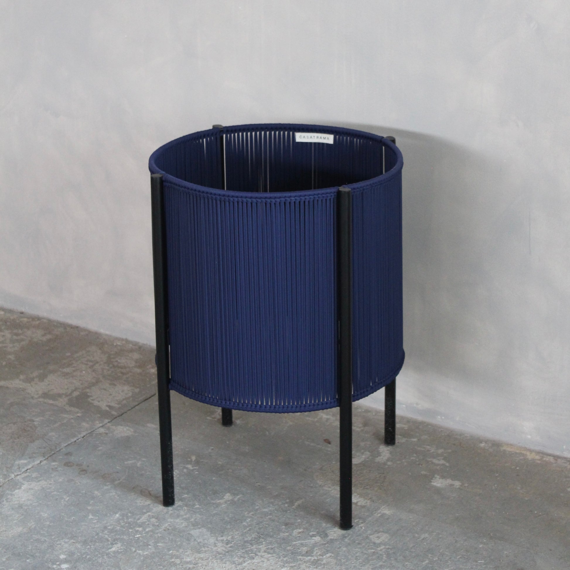 Nuestra Matera conga mini está tejida con fibras textiles recuperadas bajo la técnica trama crochet. Su estructura está hecha en varilla y tubo de acero, terminada con pintura electrostática.