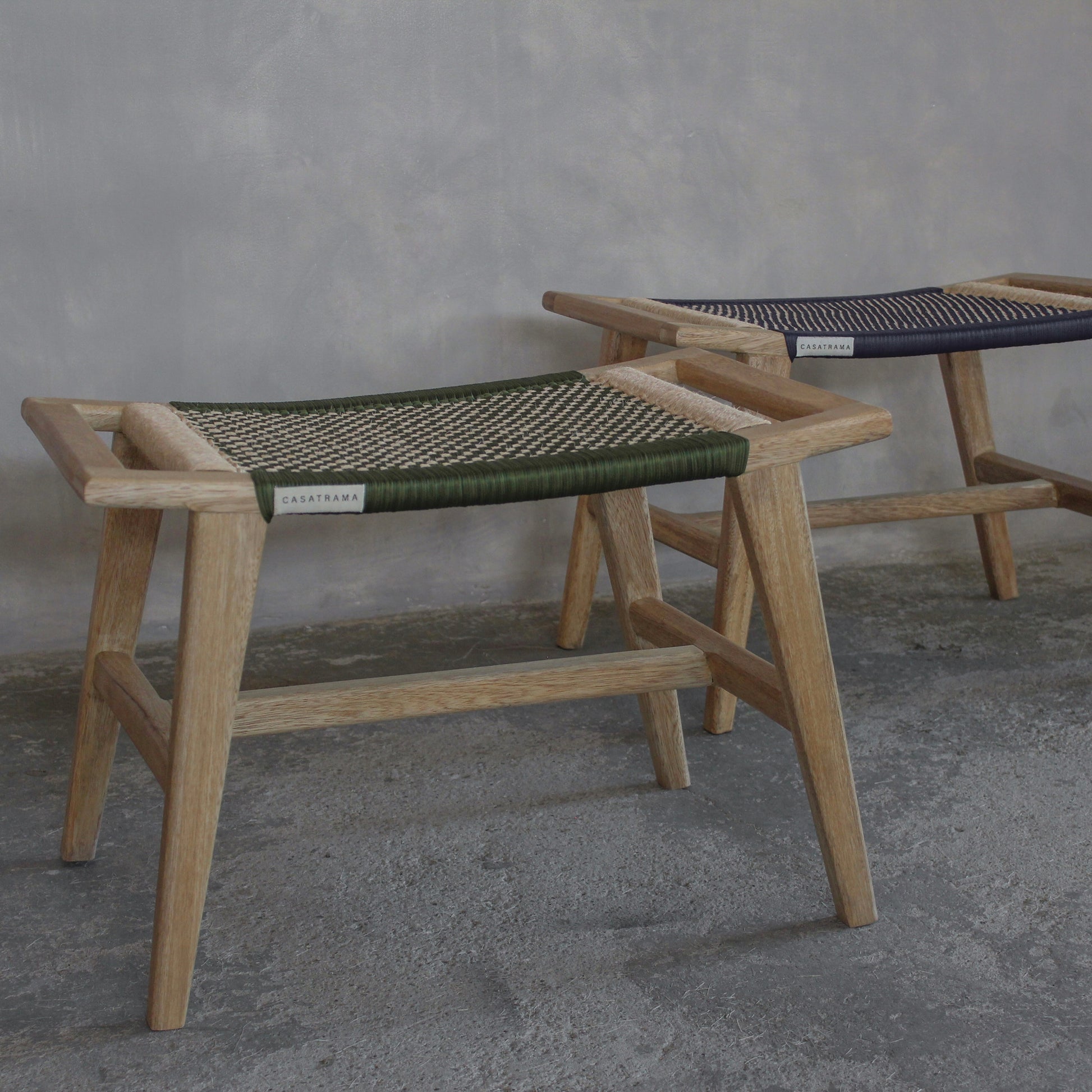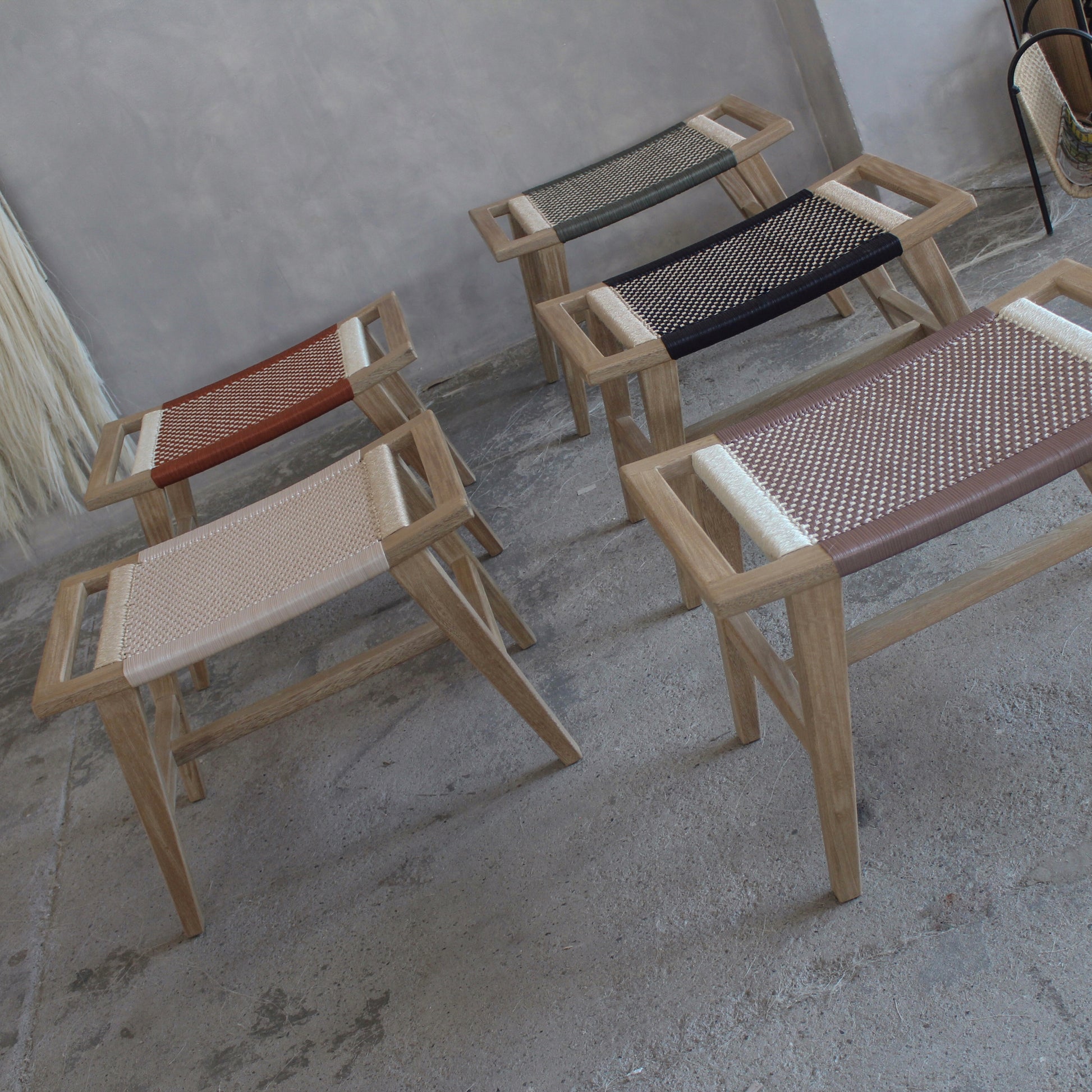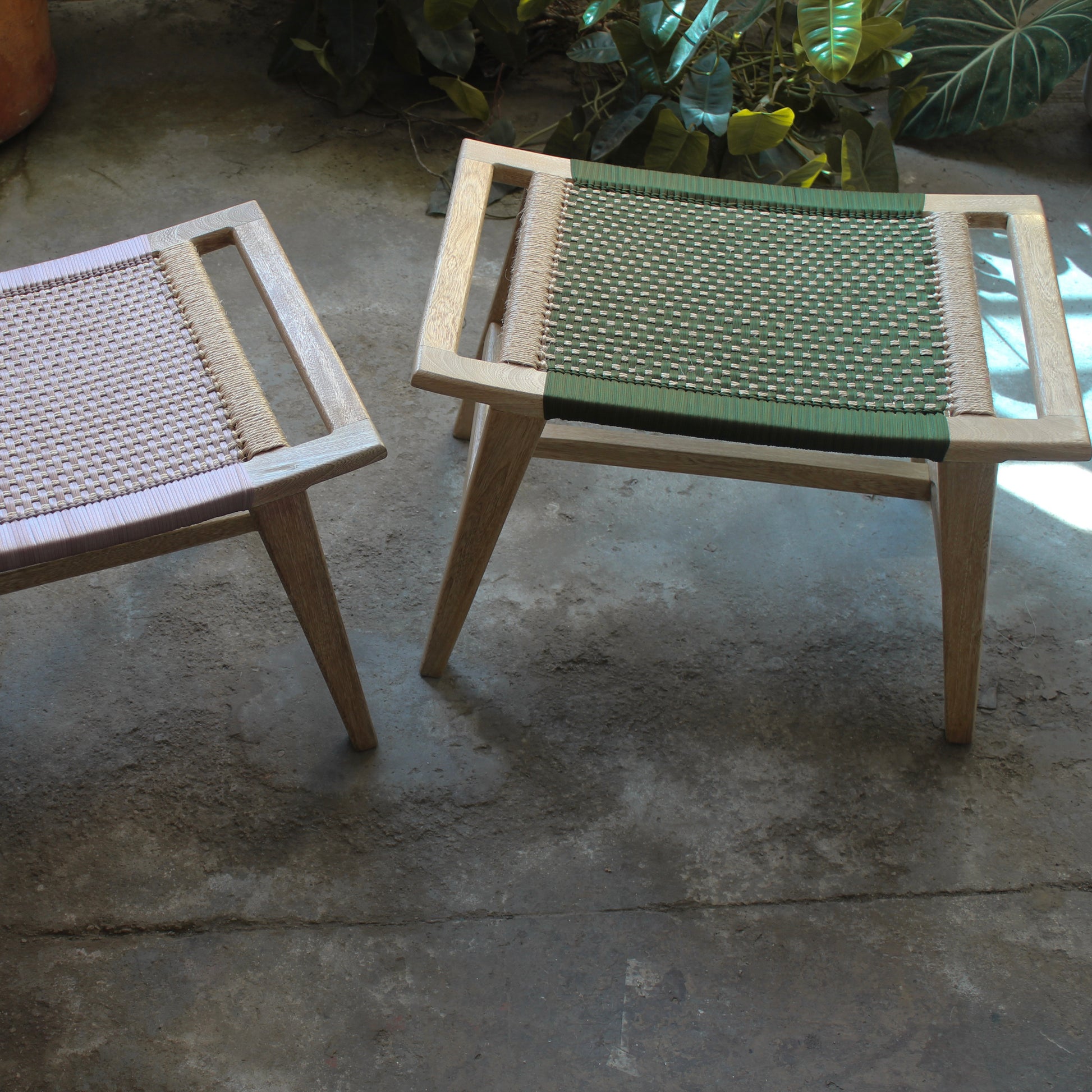 Nuestro Taburete corvo está tejido con fibras textiles recuperadas y fique trenzado bajo la técnica trama crochet. Su estructura está hecha en madera flor morado maciza y acabado mate.