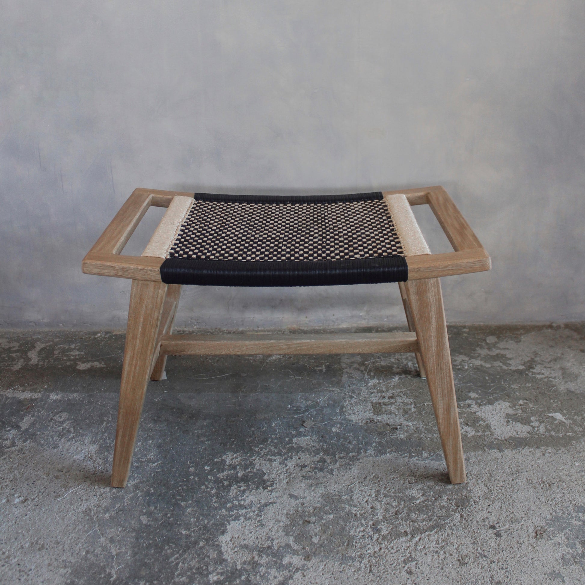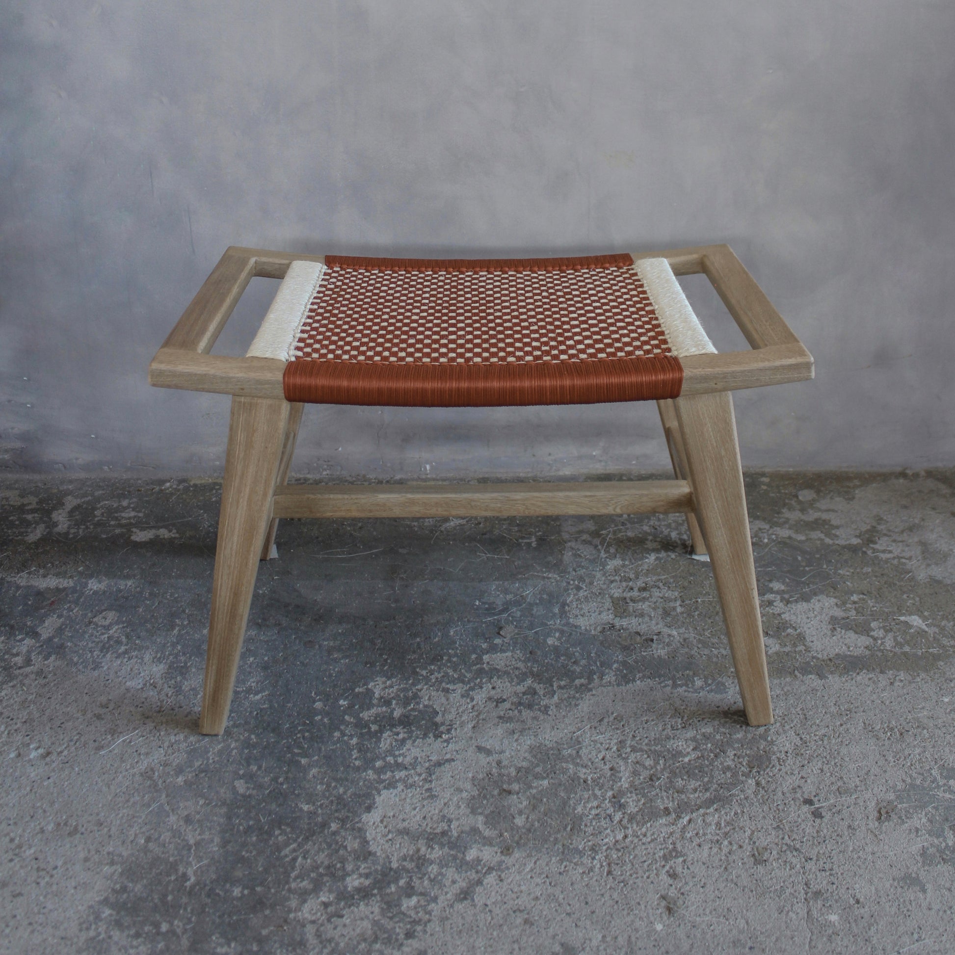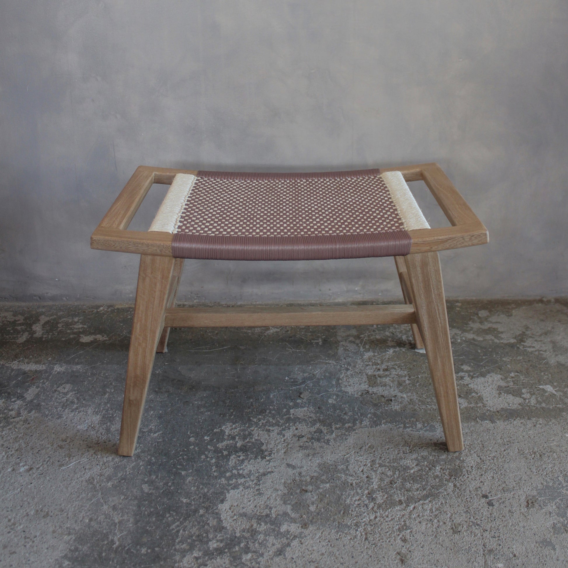 Nuestro Taburete corvo está tejido con fibras textiles recuperadas y fique trenzado bajo la técnica trama crochet. Su estructura está hecha en madera flor morado maciza y acabado mate.