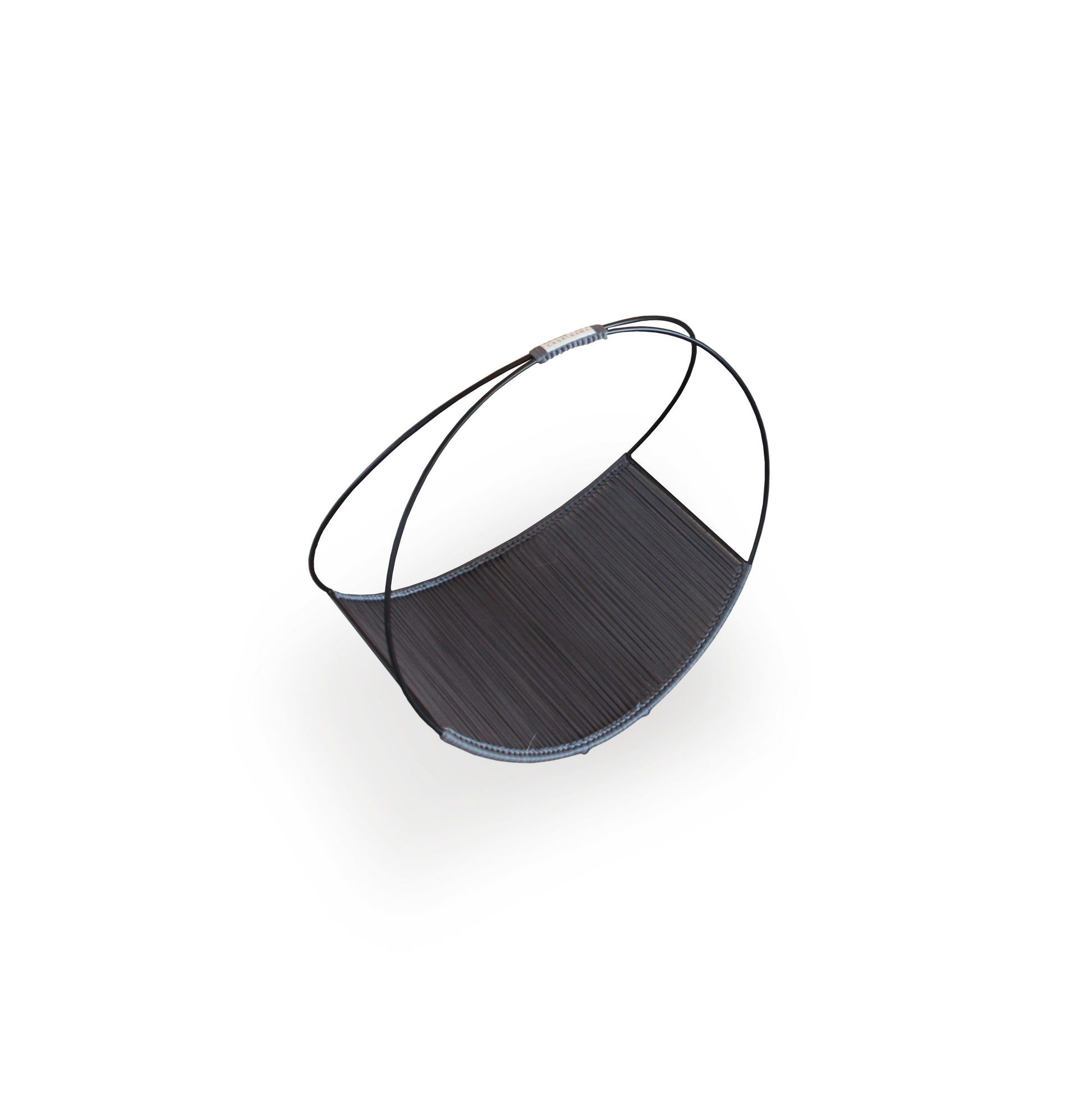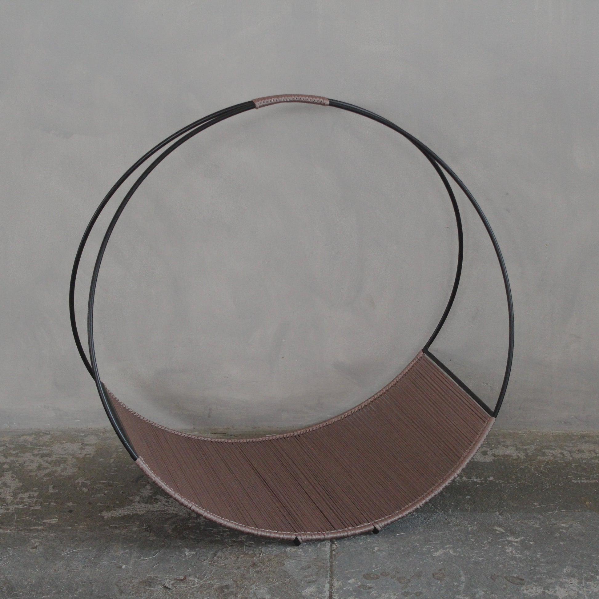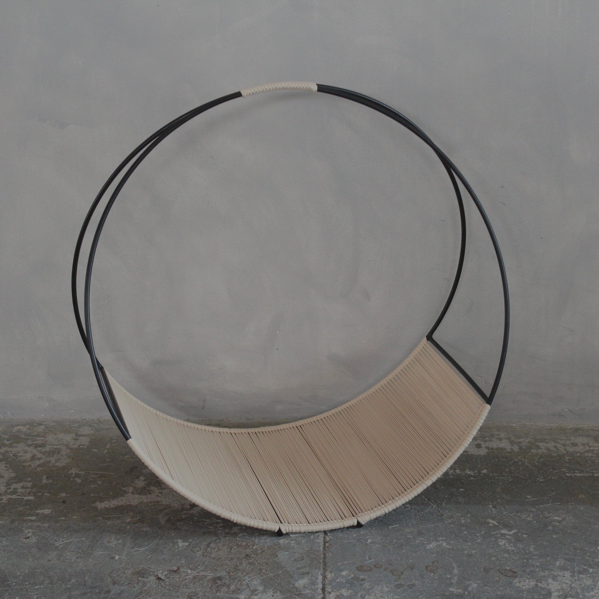 Nuestro Revistero está tejido con fibras textiles recuperadas bajo las técnicas trama crochet y macramé. Su estructura está hecha en varilla de acero y terminada con pintura electrostática.