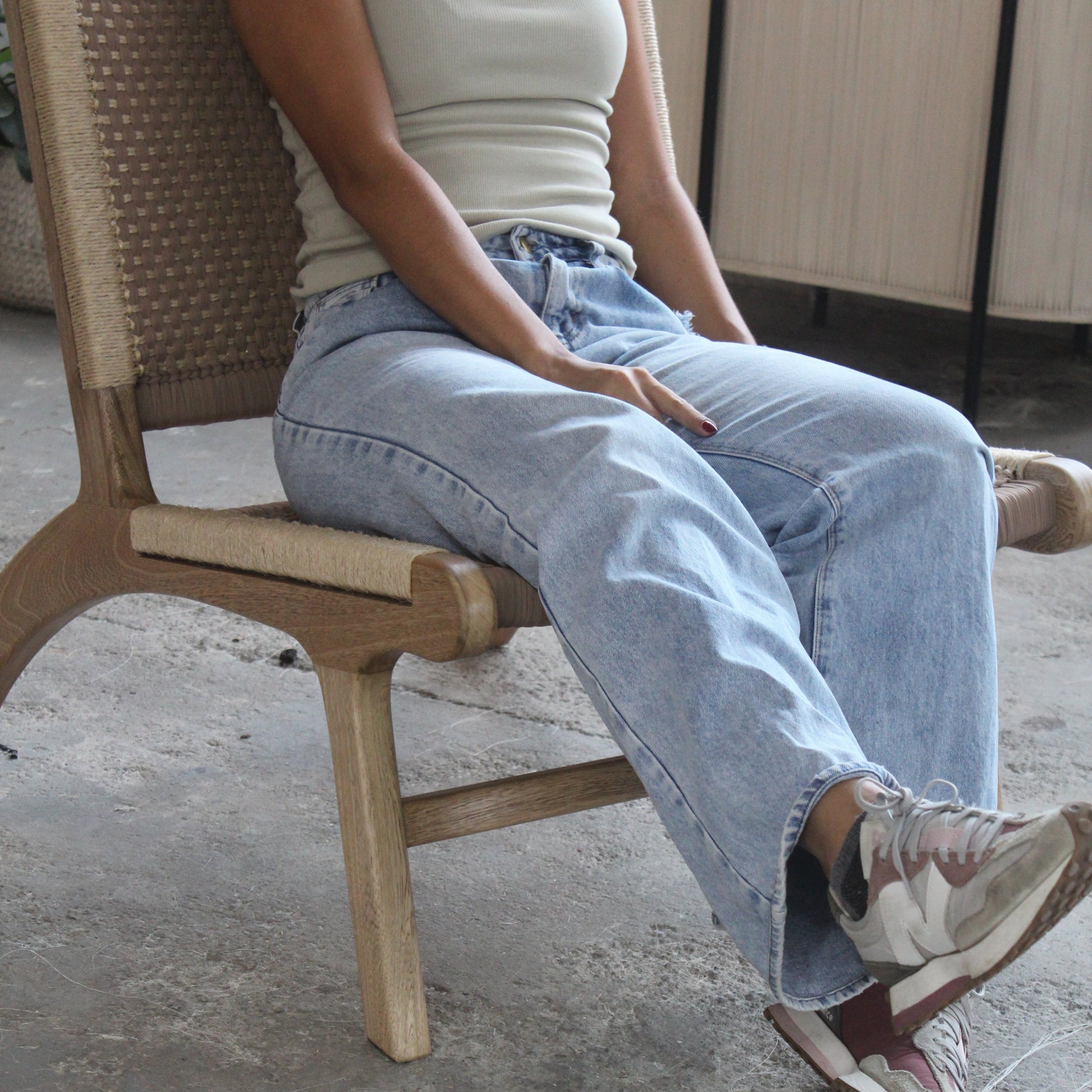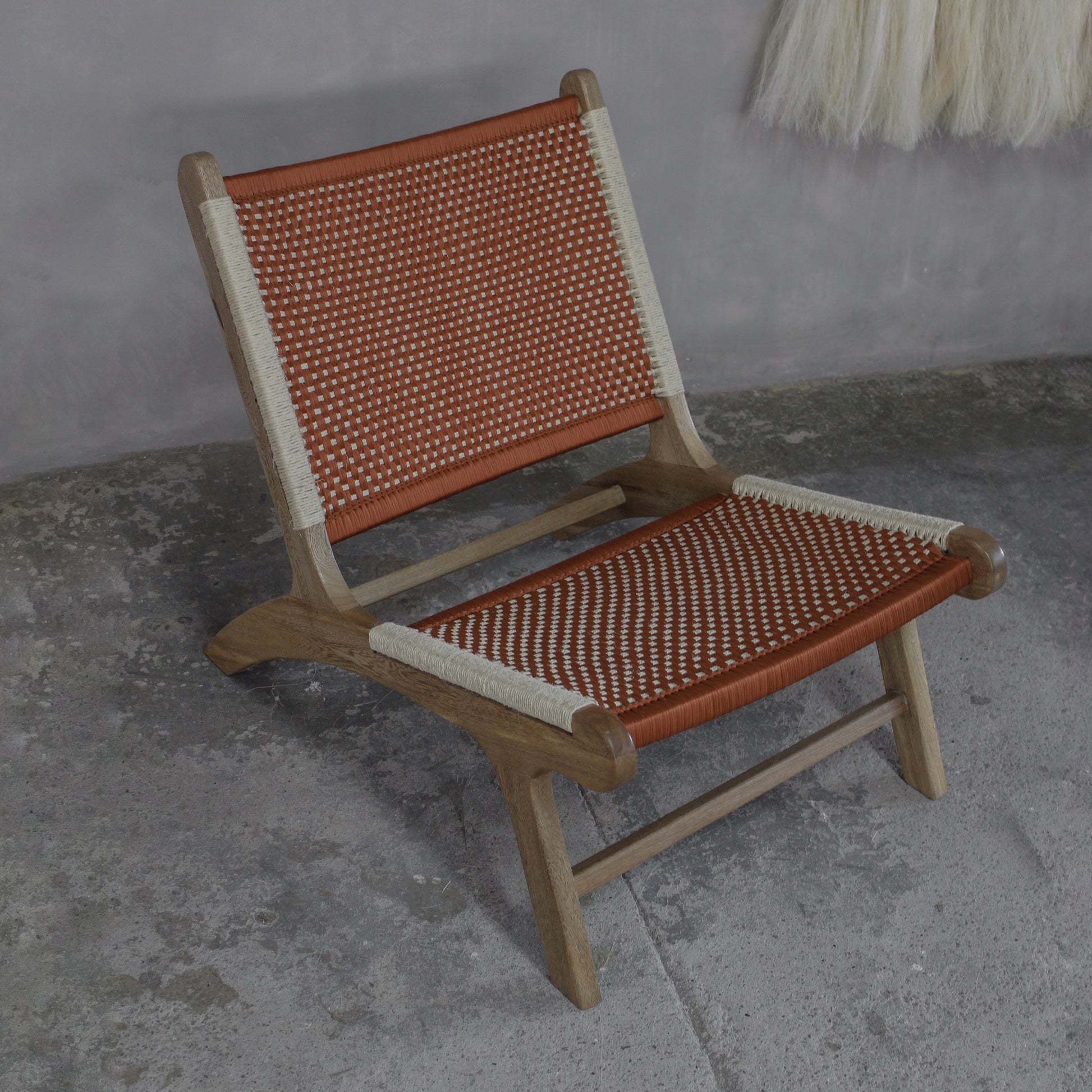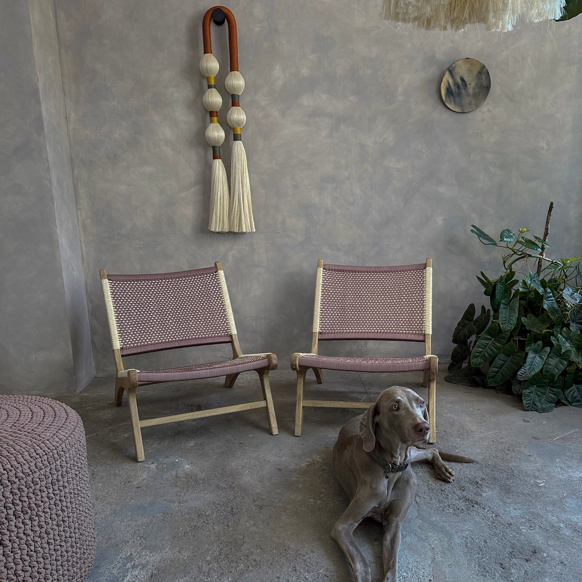 Nuestra Poltrona está tejida en fibras textiles recuperadas y fique trenzado bajo la técnica trama crochet. Su estructura está hecha en madera flor morado maciza y acabado mate.